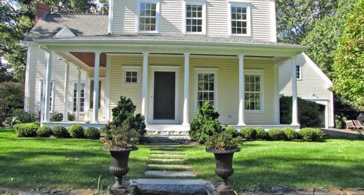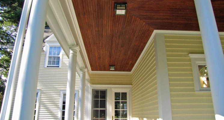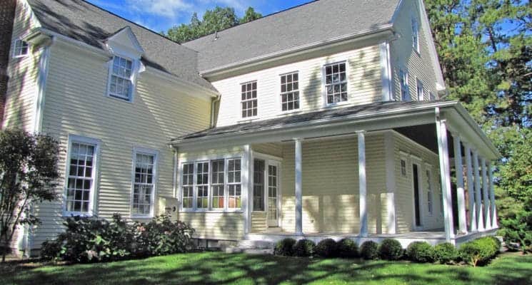 A touch of color to a colonial home, located in Concord Ma. We restored the deck and applied a fresh coat of paint to the trim and siding
