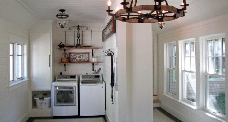 A combination of a fine painting finish and interior design brings this rustic mudroom to life! A unique space for your family and guests. Contact us for your residential interior painting needs.